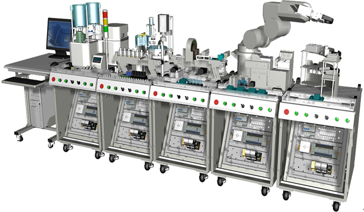機電一體化技術(shù)實訓設(shè)備是指機械技術(shù)、電工電子技術(shù)、微電子技術(shù)、信息技術(shù)、傳感器技術(shù)、接口技術(shù)、信號變換技術(shù)等多種技術(shù)進行有機地結(jié)合,并綜合應(yīng)用到實際中去的技能實訓綜合技術(shù),現(xiàn)代化的自動生產(chǎn)設(shè)備幾乎可以說都是機電一體化的設(shè)備。自動化生產(chǎn)線實訓考核系統(tǒng),可以培養(yǎng)和提高學生專業(yè)綜合能力,是一種重要的實訓設(shè)備。自動化生產(chǎn)線實訓系統(tǒng)、基于PLC技術(shù)的自動化生產(chǎn)線實訓考核系統(tǒng),可以培養(yǎng)和提高學生專業(yè)綜合能力,是一種重要的實訓設(shè)備。自動化生產(chǎn)線實訓系統(tǒng)整體包括自動供料、檢測傳輸、檢測加工、自動裝配、自動分揀等工序,很好的將機械技術(shù)、微電子技術(shù)、電工電子技術(shù)、傳感測試技術(shù)、接口技術(shù)、信息變換技術(shù)、網(wǎng).絡(luò)通信技術(shù)等多種技術(shù)有機地結(jié)合。該系統(tǒng)中自動分揀站的設(shè)計過程,包括系統(tǒng)硬件設(shè)計、PLC控制設(shè)計和程序設(shè)計方法。現(xiàn)代化的自動生產(chǎn)設(shè)備的最大特點是它的綜合性和系統(tǒng)性,在這里,機械技術(shù)、微電子技術(shù)、電工電子技術(shù)、傳感測試技術(shù)、接口技術(shù)、信息變換技術(shù)、網(wǎng)絡(luò)通信技術(shù)等多種技術(shù)有機地結(jié)合,并綜合應(yīng)用到生產(chǎn)設(shè)備中:而系統(tǒng)性指的是,生產(chǎn)線的傳感檢測、傳輸與處理、控制、執(zhí)行與驅(qū)動等機構(gòu)在微處理單元的控制下協(xié)調(diào)有序地工作,有機地融合在一起。可編程序控制器(PLC)以其高抗干擾能力、高可靠性、高性能價格比且編程簡單而廣泛地應(yīng)用在現(xiàn)代化的自動生產(chǎn)設(shè)備中,擔負著生產(chǎn)線的大腦一微 處理單元的角色。因此,培養(yǎng)掌握機電一體化技術(shù),掌握PLC技術(shù)及PLC網(wǎng)絡(luò)技術(shù)的技術(shù)人材是當務(wù)之急。而一套基于PLC技術(shù)的自動化生產(chǎn)線實訓考核設(shè)備可以模擬一個與實際生產(chǎn)情況+分接近的控制過程,使學習者得到一個非常接近于實際的教學設(shè)備環(huán)境,從而縮短了理論教學與實際應(yīng)用之間的距離。自動分揀站需完成對上一單元送來的已加工、裝配的工件進行分揀。使不同顏色的工件從不同的料槽分流的功能。當輸送站送來工件放到傳送帶上并為入料口光電傳感器檢測到時,即啟動變頻器,工件開始送入分揀區(qū)進行分揀。上海碩博弘揚大國工匠精神, 發(fā)展職業(yè)教育,應(yīng)用教學設(shè)備,為企業(yè)培養(yǎng)高技能人才,而專業(yè)生產(chǎn):光機電一體化(自動生產(chǎn)線)實訓裝置、灌裝自動化生產(chǎn)線實訓裝置、工業(yè)自動生產(chǎn)線實訓裝置 、工業(yè)控制模擬實訓裝置 、機電一體化組合實訓平臺 、機電一體化綜合實訓考核裝置、自動化生產(chǎn)安裝與調(diào)試實訓裝置 、光機電一體化高速分揀實訓系統(tǒng) 、典型機電設(shè)備安裝與控制實訓裝置、模塊式柔性自動環(huán)形生產(chǎn)線實驗系統(tǒng)(帶機器人工程型)、立體停車庫實物教學實驗裝置、機電一體化柔性生產(chǎn)線加工實訓系統(tǒng)(5站)、網(wǎng)絡(luò)型模塊式柔性自動化生產(chǎn)線實驗系統(tǒng)、模塊式柔性自動環(huán)形生產(chǎn)線實驗系統(tǒng)(工程型)、柔性生產(chǎn)制造實驗系統(tǒng)(工程型)、現(xiàn)代物流倉儲自動化實驗系統(tǒng)、運動實訓裝置、循環(huán)搬運自動控制實訓裝置、平面雙軸運行控制實訓裝置、工業(yè)機械手實訓裝置、物料分揀實訓裝置、機械手實訓裝置 、立體倉庫實訓裝置、十字路口交通燈實訓系統(tǒng)、機電液氣一體化綜合實訓裝置、光機電一體化高速分揀實訓系統(tǒng)、步進伺服控制綜合實訓平臺、光機電氣一體化控制實訓系統(tǒng)、 光機電一體化綜合實訓考核裝置、光機電一體化實訓考核裝置、光機電一體化實訓考核裝置、光機電氣一體化控制實訓系統(tǒng)、自動生產(chǎn)線拆裝與調(diào)試實訓裝置、柔性自動化生產(chǎn)線實訓系統(tǒng)。
