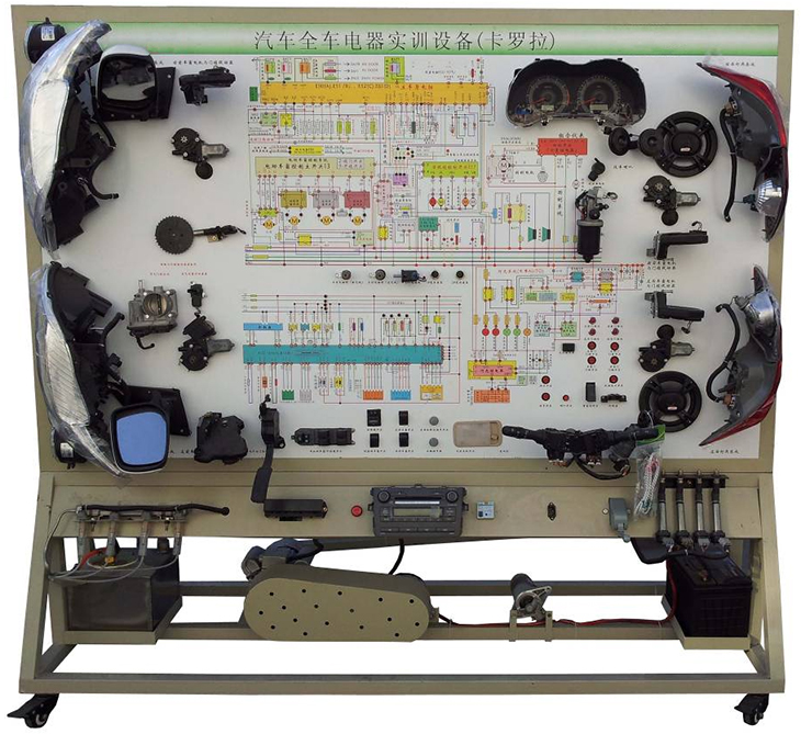 汽車電氣設(shè)備實(shí)訓(xùn)室。汽車電器設(shè)備實(shí)訓(xùn)室包含有汽車燈光系統(tǒng)、車載網(wǎng)絡(luò)系統(tǒng)、全車電器系統(tǒng)、汽車啟動系統(tǒng)、汽車空調(diào)系統(tǒng)、全車線路試驗(yàn)臺、等實(shí)訓(xùn)教學(xué)設(shè)備。該實(shí)訓(xùn)室可以承擔(dān)《汽車構(gòu)造》、《汽車電器設(shè)備》、《汽車電控系統(tǒng)》、《汽車檢測與診斷》等課程的實(shí)踐教學(xué)任務(wù)?梢杂糜谘芯、分析全車電器系統(tǒng)、燈光系統(tǒng)、儀表系統(tǒng)等電器設(shè)備的電路及功能。利用這些系統(tǒng)進(jìn)行實(shí)踐教學(xué),使學(xué)生熟悉汽車電器的結(jié)構(gòu)和工作原理,掌握各個系統(tǒng)的基本組成電路,掌握主要電路的檢測方法和系統(tǒng)的故障特征,從而具有一定的檢測和調(diào)校能力。
