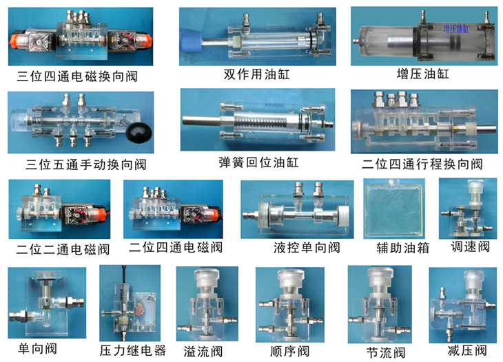 1.在原有透明液壓PLC控制實(shí)驗(yàn)裝置幾十種基本回路上增加了可模擬真實(shí)挖掘機(jī)工作裝置各種動(dòng)作。
