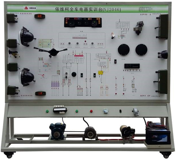 2.設(shè)備面板采用耐創(chuàng)擊、耐污染、防火、防潮的高級(jí)鋁塑板,表面經(jīng)特殊工藝噴涂底漆處理;面板打印有永不褪色的彩色電路圖;學(xué)員可直觀對(duì)照電路圖和實(shí)物,認(rèn)識(shí)和分析汽車(chē)整車(chē)電器各系統(tǒng)的工作原理。