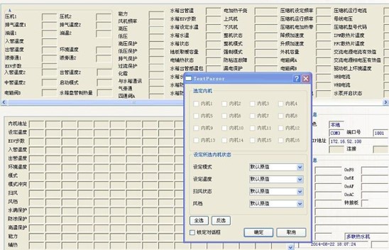 軟件可實現(xiàn)對內(nèi)機的控制,,可以對1-64臺內(nèi)機的狀態(tài)進(jìn)行設(shè)定。