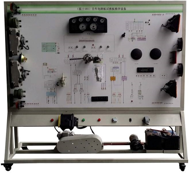 全車電路板試教板教學(xué)設(shè)備采用 全新 新款猛士181柴油機(jī)整車電器實物為基礎(chǔ),充分展示汽車儀表系統(tǒng)、燈光系統(tǒng)、雨刮系統(tǒng)、喇叭系統(tǒng)、發(fā)動機(jī)電器系統(tǒng)、起動系統(tǒng)和充電系統(tǒng)等汽車電器各系統(tǒng)的組成結(jié)構(gòu)和工作過程。