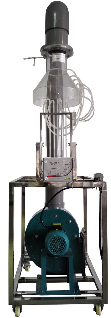 局部抽吸排風罩、畢托管、壓差計、低噪音多翼風機、管路、斜管微壓計、調節(jié)風門、高度尺、不銹鋼實驗臺架。
