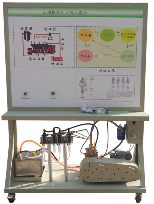 2.示教板面板采用耐創(chuàng)擊、耐污染、防火、防潮的高級鋁塑板,表面經(jīng)特殊工藝噴涂底漆處理;面板打印有永不褪色的彩色電路圖與工作原理示意圖;學(xué)員可直觀對照電路圖和實物,認識和分析柴油發(fā)動機燃油噴射系統(tǒng)的工作原理。