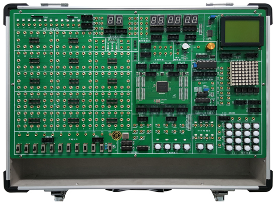 數(shù)字電路、EDA技術(shù)實(shí)驗(yàn)設(shè)計(jì)系統(tǒng)由鋁木合金箱體、開關(guān)電源、常用信號(hào)源、常用模數(shù)接口、人機(jī)接口、接插式FPGA下載板和實(shí)驗(yàn)電路區(qū)等組成。其中信號(hào)源由高性能單片機(jī)產(chǎn)生,穩(wěn)定可靠。全部的實(shí)驗(yàn)用信號(hào)線的連接采用高可靠杜邦線和單根2號(hào)插針線,避免接觸不良現(xiàn)象反生。擴(kuò)展設(shè)計(jì)的CPLD/FPGA開發(fā)板為用戶開展創(chuàng)新設(shè)計(jì)提供了良好的硬件平臺(tái)。本實(shí)驗(yàn)箱適用于本?圃盒K须婎惡头请婎悓I(yè)《數(shù)字電子技術(shù)》、《數(shù)字系統(tǒng)設(shè)計(jì)》、《EDA技術(shù)設(shè)計(jì)》等課程的實(shí)驗(yàn)、實(shí)訓(xùn)和創(chuàng)新設(shè)計(jì),有出版社出版的配套教材。