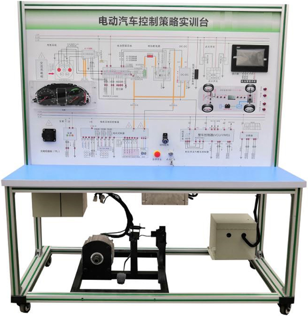 純電動汽車電控系統(tǒng)教學(xué)平臺采用純電動車控制策略系統(tǒng)(包含電機(jī)控制、電池管理、VCU控制、車載充電機(jī)、電源轉(zhuǎn)換系統(tǒng)、高壓安全系統(tǒng))的真實器件制作,包含電池及管理系統(tǒng)、電機(jī)及控制系統(tǒng)、車載充電系統(tǒng)、整車控制器VCU及控制系統(tǒng)、電源轉(zhuǎn)換系統(tǒng)(AC-DC模塊、DC-DC模塊、DC-AC模塊)、高壓安全系統(tǒng),真實展示電動汽車控制策略系統(tǒng)的結(jié)構(gòu)原理與工作過程,純電動車控制策略系統(tǒng)動力性能、可靠性能、安全性能。實現(xiàn)控制策略演示驗證操作,包括起步模式、正常驅(qū)動模式、能量管理策略、安全控制策略以及其他情況下的控制策略等,并對控制策略進(jìn)行檢測分析診斷。