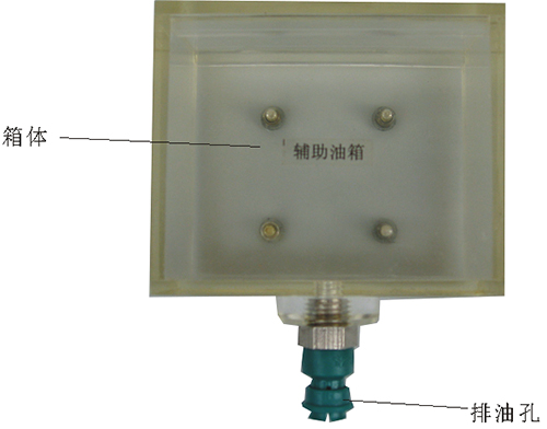 2、輔助油箱采用了封閉箱體結(jié)構(gòu),外殼材料采用進(jìn)口透明有機(jī)玻璃,在輔助油箱的上端配有螺旋蓋油孔,螺旋蓋上設(shè)有排氣孔。下端有透明有機(jī)材料制造的排油閥。