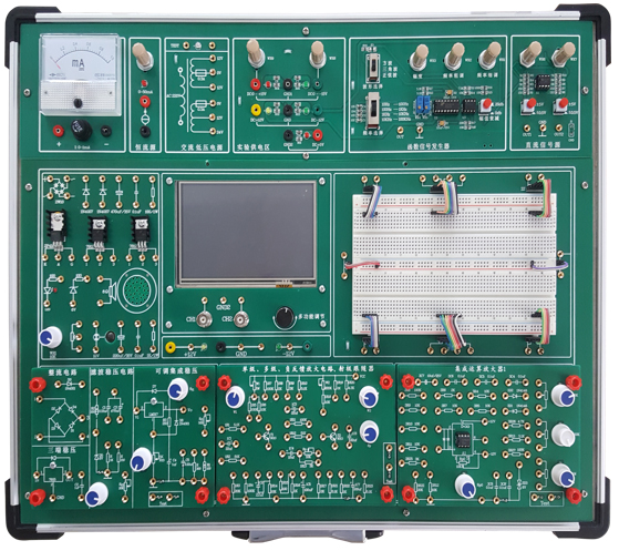 含機(jī)箱、工作電源、常用模擬信號源、實(shí)驗電路區(qū)和分立元件和測量儀器等 |