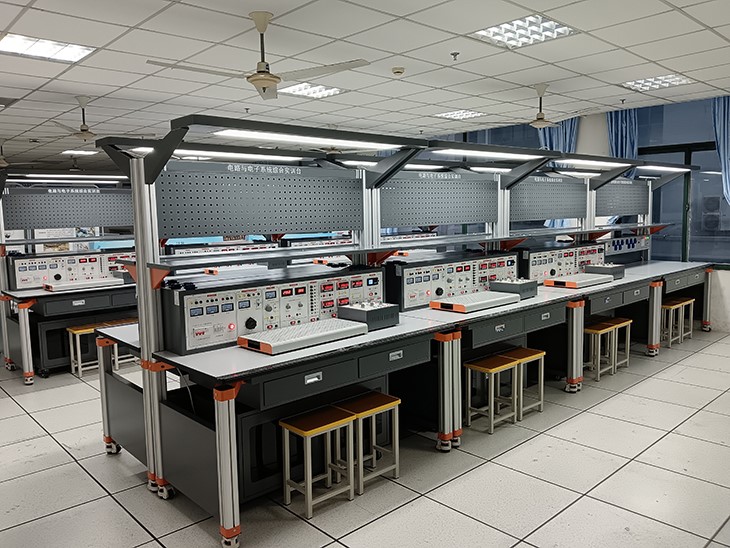 電路數(shù)電模電實(shí)驗(yàn)平臺(tái)、模擬電路實(shí)驗(yàn)實(shí)訓(xùn)室設(shè)備作為基礎(chǔ)實(shí)驗(yàn)室,可承擔(dān)電子系、通信系和自動(dòng)化系相關(guān)專業(yè)的《模擬電路》、《高頻電路》、《電子測(cè)量》等課程的所有實(shí)驗(yàn)及仿真,以及電子和通信類專業(yè)綜合課程實(shí)訓(xùn)、畢業(yè)論文(設(shè)計(jì))等。電路數(shù)電模電實(shí)驗(yàn)平臺(tái)主要培養(yǎng)了學(xué)生的專業(yè)基礎(chǔ)知識(shí)素養(yǎng),提高了學(xué)生的實(shí)驗(yàn)?zāi)芰蛻?yīng)用能力,并為教師教學(xué)創(chuàng)新、本科生畢業(yè)設(shè)計(jì)等提供了有利條件。