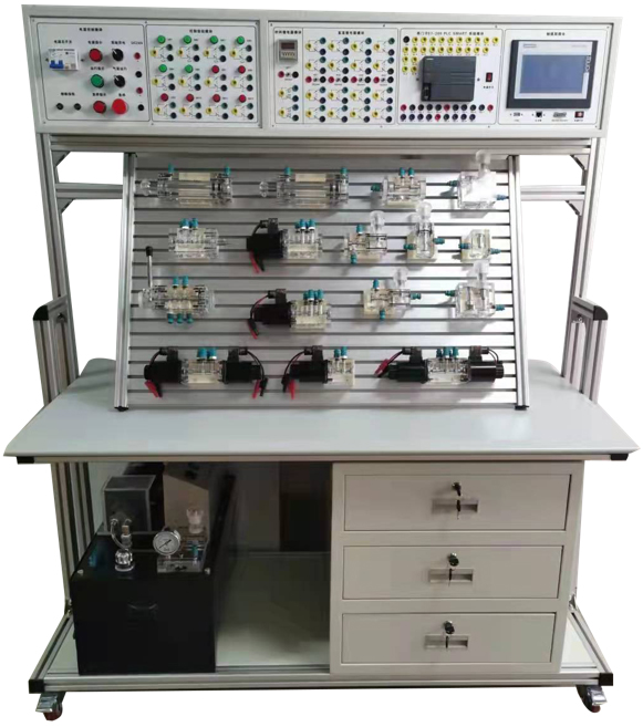 液壓實(shí)驗(yàn)實(shí)訓(xùn)室設(shè)備可承擔(dān)機(jī)電一體化技術(shù)、機(jī)械制造與自動(dòng)化、模具設(shè)計(jì)與制造、數(shù)控加工技術(shù)以及汽車維修等專業(yè)的液壓與氣動(dòng)技術(shù)、機(jī)電設(shè)備維修、機(jī)電設(shè)備安裝與調(diào)試、機(jī)電一體化設(shè)計(jì)等課程的實(shí)驗(yàn)或?qū)嵱?xùn)。 液壓實(shí)驗(yàn)實(shí)訓(xùn)臺(tái)主要承擔(dān)機(jī)械工程及自動(dòng)化專業(yè)方向的本、?埔簤簜鲃(dòng)的課程實(shí)驗(yàn)。能夠顯著增強(qiáng)學(xué)生的認(rèn)識(shí)和理解,同時(shí)也能鍛煉學(xué)生的動(dòng)手能力,亦可為社會(huì)培養(yǎng)一批液壓技術(shù)方面的專項(xiàng)人才。 液壓實(shí)驗(yàn)實(shí)訓(xùn)臺(tái)主要研究方向?yàn)橐簤宏P(guān)鍵元件設(shè)計(jì),機(jī)電液系統(tǒng)感知與智能控制,機(jī)電液系統(tǒng)先進(jìn)材料研究。 液壓與氣動(dòng)技術(shù)實(shí)驗(yàn)室設(shè)備主要承擔(dān)機(jī)電類相關(guān)專業(yè)《液壓與氣動(dòng)技術(shù)》課程的專業(yè)實(shí)驗(yàn)任務(wù)。能提供包括液壓泵和控制元件結(jié)構(gòu)拆裝與分析實(shí)驗(yàn)、系統(tǒng)回路控制實(shí)驗(yàn)、系統(tǒng)性能實(shí)驗(yàn)和氣動(dòng)技術(shù)實(shí)驗(yàn)在內(nèi)的不同類型的實(shí)驗(yàn)。液壓實(shí)驗(yàn)室所開設(shè)的實(shí)驗(yàn)和液壓(或氣動(dòng))行業(yè)中的液壓系統(tǒng)(或氣動(dòng)系統(tǒng))的設(shè)計(jì)、連接調(diào)試、維護(hù)等緊密相關(guān),通過機(jī)-電-液一體化綜合控制實(shí)驗(yàn),學(xué)生可系統(tǒng)地學(xué)習(xí)PLC程序設(shè)計(jì)與調(diào)試、液壓回路的設(shè)計(jì)與調(diào)試,并且通過力控軟件使相關(guān)知識(shí)有機(jī)地結(jié)合在一起,實(shí)現(xiàn)對(duì)硬件的動(dòng)作,從而提高各門課程的綜合應(yīng)用能力。
