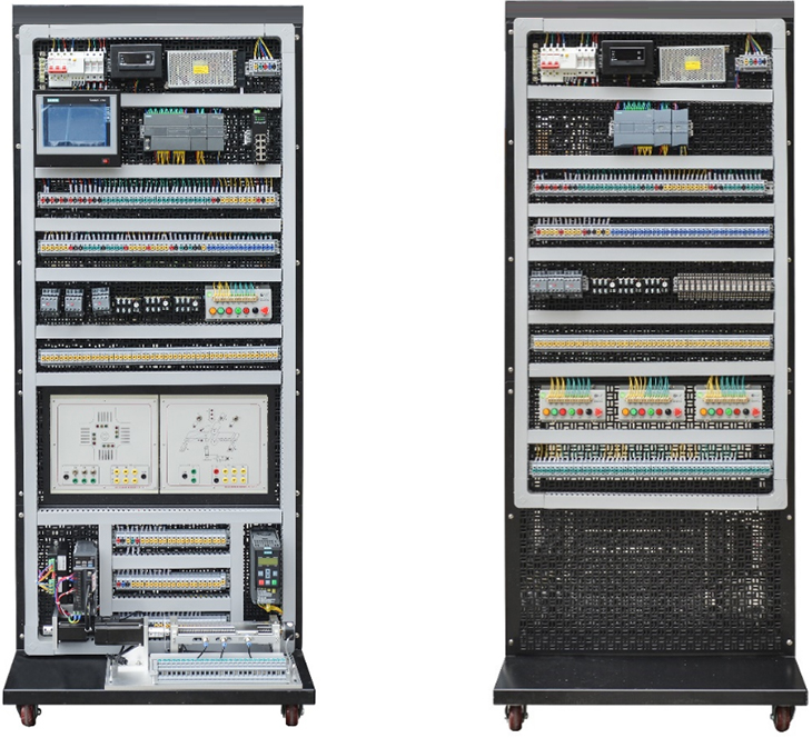 現(xiàn)代電氣控制系統(tǒng)安裝與調(diào)試實(shí)訓(xùn)考核裝置適合高等職業(yè)學(xué)校的機(jī)電設(shè)備安裝與維修、機(jī)電技術(shù)應(yīng)用、電氣運(yùn)行與控制、電氣技術(shù)應(yīng)用和電子電器應(yīng)用與維修等專業(yè),包括機(jī)械運(yùn)動(dòng)模塊,繼電模塊,儀表顯示模塊,按鈕單元,組態(tài)模塊,特種電機(jī)單元,通信單元等組成,通過相應(yīng)的掛板組件組成多種簡單或復(fù)雜的電氣控制系統(tǒng)完成教學(xué)和實(shí)訓(xùn)。